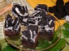 5. Spoon the frosting on top of the cooled brownies in the pan. Using a small metal spatula, spread the frosting evenly over the top of the brownies. Place the brownies in the refrigerator for 10 minutes until the frosting sets before cutting them into 2-inch square bars and serving.
