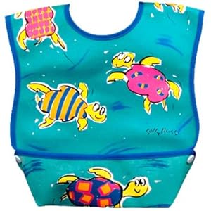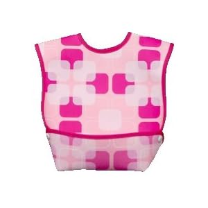 After trying all sorts of bibs (cloth, homemade, disposable, etc etc) I found this brand of bib at a store that closed up a few years ago (Nationwide Baby on Lincoln -- anyone remember that gem?). Anyway, the saleslady was so sweet and lovely and recommended that I try this new bib that had come to their store. So I took a look.
