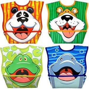 Anyway, I digress. These bibs unsnap and let you clean out all of the goop. I hose them down at the sink and let them air dry between meals. I do recommend you have at least two, though. So that while one is drying you have another one ready to go.